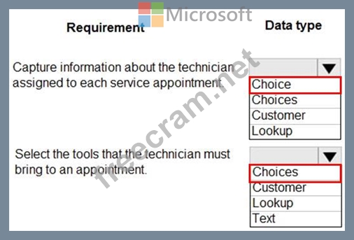 You are designing a Power Platform solution for a company that provides in-home appliance maintenance. When a customer schedules a service appointment, a dispatcher assigns one technician for a specific time and location.