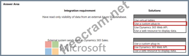 A company plans to create a Microsoft Power Platform solution that integrates with Dynamics 365 Sates. The solution must meet the following requirements: