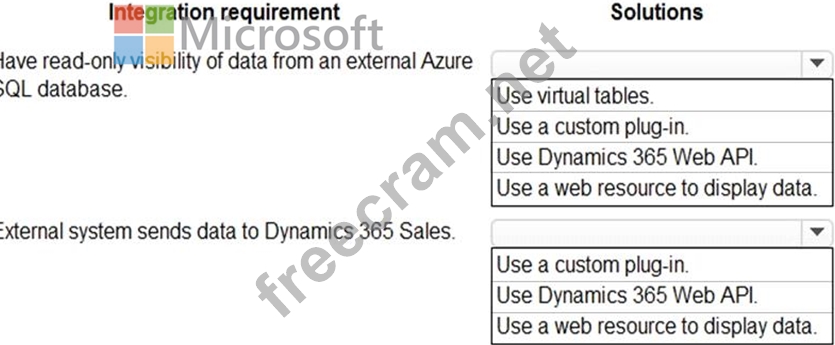 You need to recommend the most suitable solution to integrate Dynamics 365 Sales with both systems.