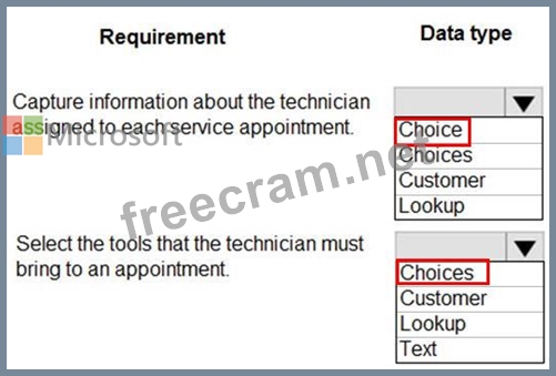 You are designing a Power Platform solution for a company that provides in-home appliance maintenance. When a customer schedules a service appointment, a dispatcher assigns one technician for a specific time and location.