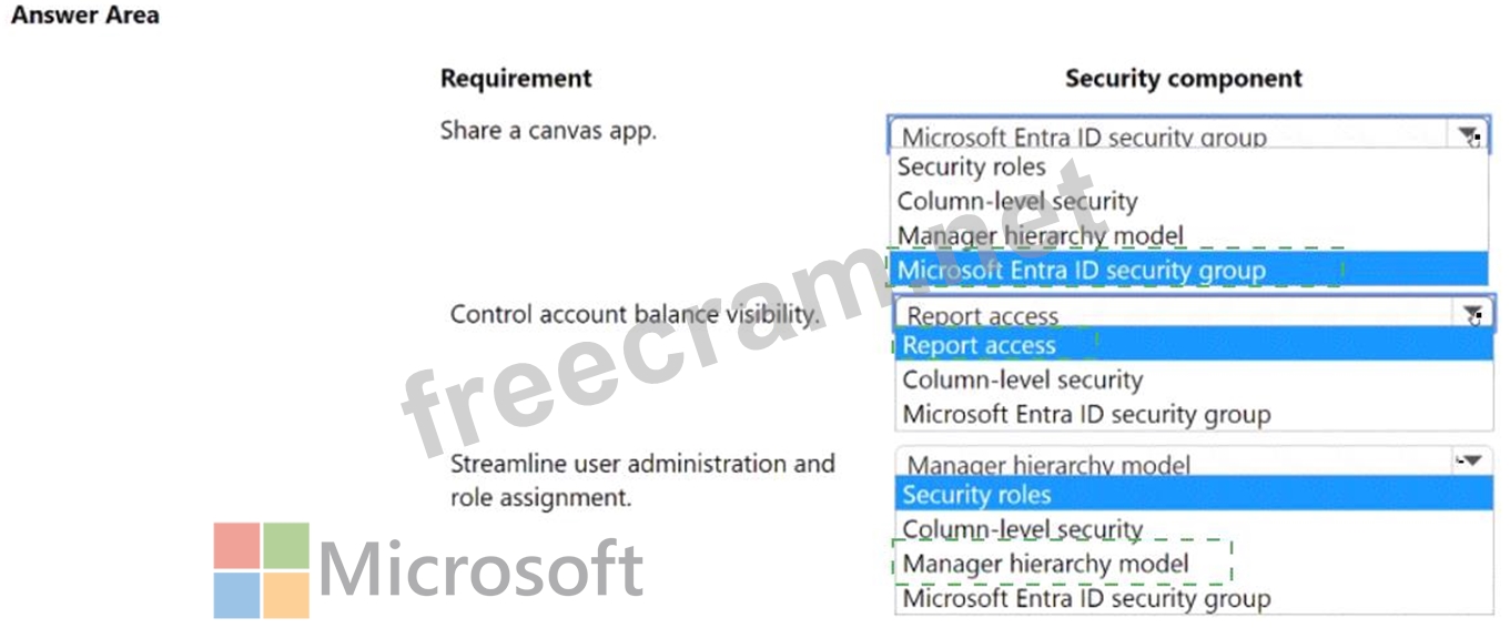 A company plans to use a combination of model-driven and canvas apps for data interaction and Power Bl for data reporting. The company has the following requirements: