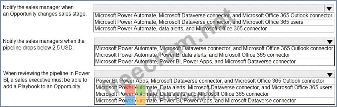 Box 3: Microsoft Power Automate, Power BI, Power Apps, and Microsoft Dataverse connector Reference: