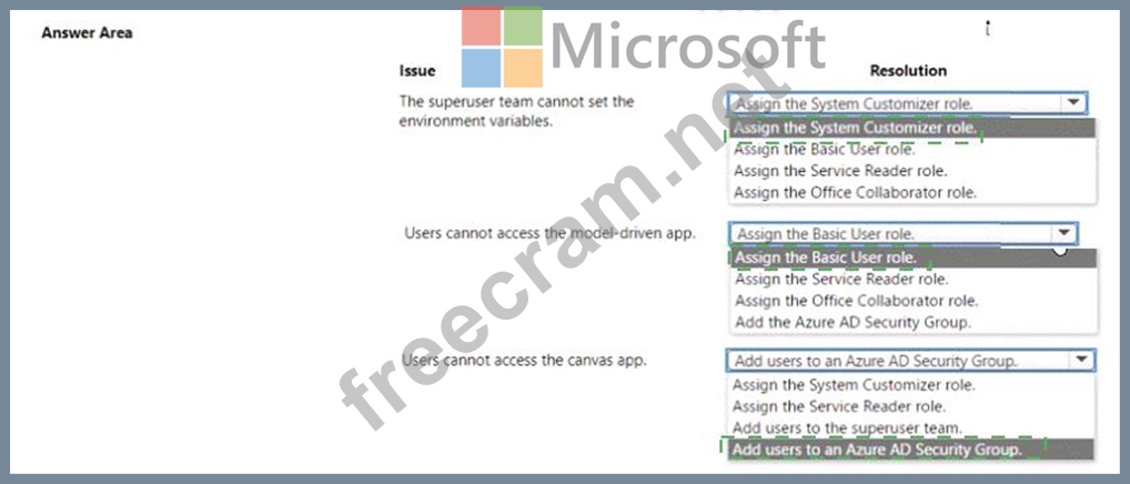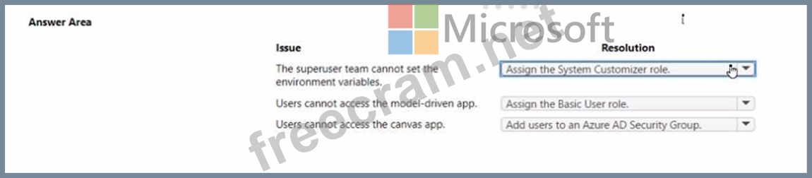 You are working with a customer to plan a go-live deployment to their production environment. The solution includes several apps and environment variables. The superuser team manages the production environment that is secured by using a specific environment Azure AD security group.