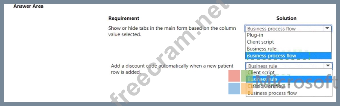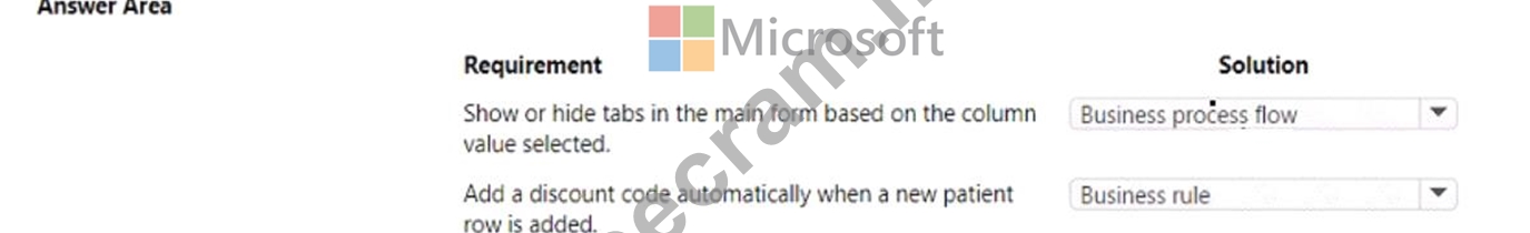 A company uses Microsoft Dataverse to store patient Information-Patient information is managed using Dataverse forms. The company must enforce the following rules to manage data quality: