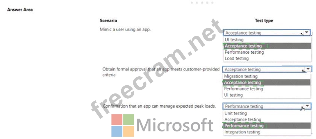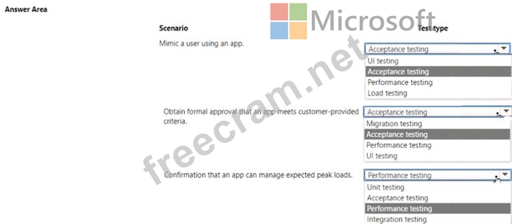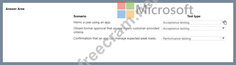 Which test types should you use? To answer, select the appropriate options in the answer area.