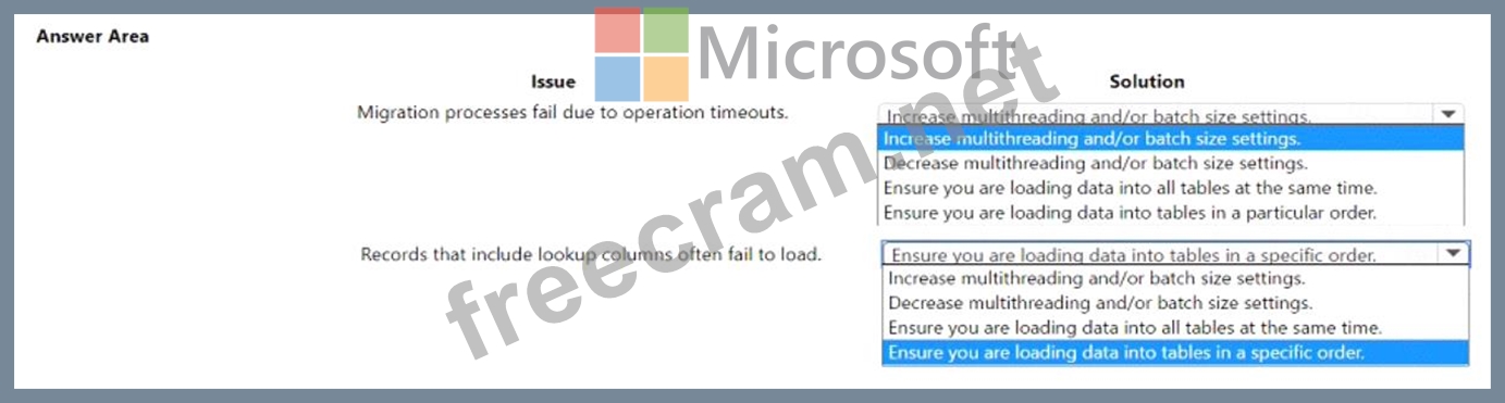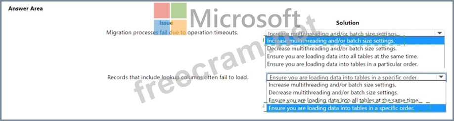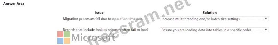 You are supporting the go-live process for a company. The company is responsible for migrating data to the Microsoft Power Platform by using a custom solution. The company reports the following issues: