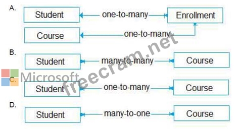 You are designing the data model for a school. The school wants to track students' enrollments in courses.