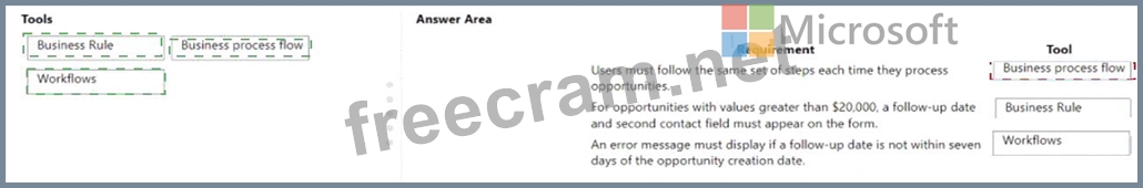 What should you recommend? To answer, drag the appropriate tools to the correct requirement. Each tool may be used once, more than once, or not at all. You may need to drag the split bar between panes or scroll to view content.