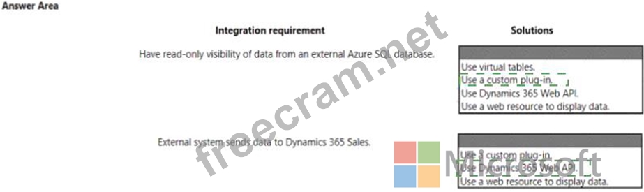 A company plans to create a Microsoft Power Platform solution that integrates with Dynamics 365 Sates. The solution must meet the following requirements: