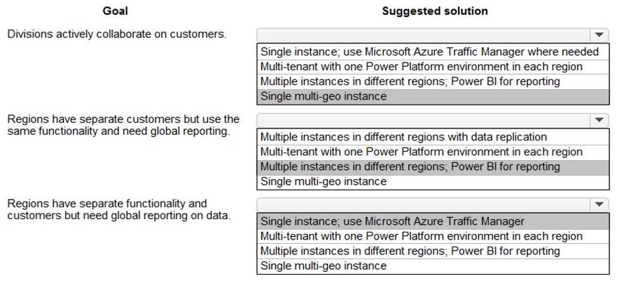 A multinational organization uses a single Microsoft Power Platform environment. The instance hosts multiple customizations for different users m different regions.