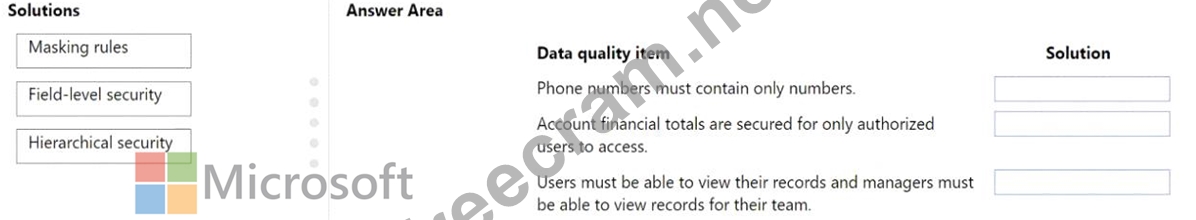 What should you recommend? To answer, drag the appropriate solutions to the correct data quality items.