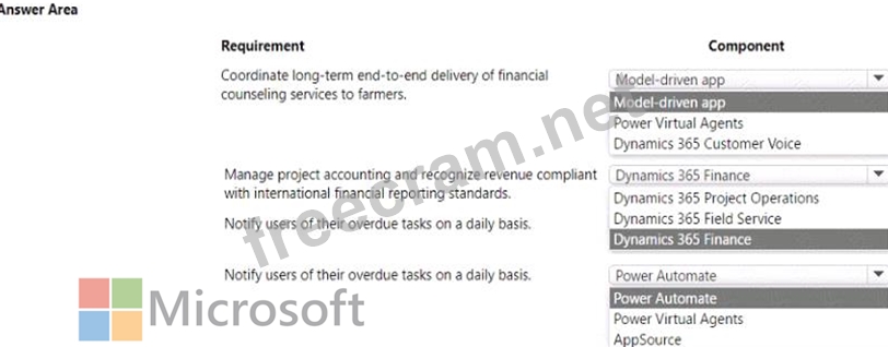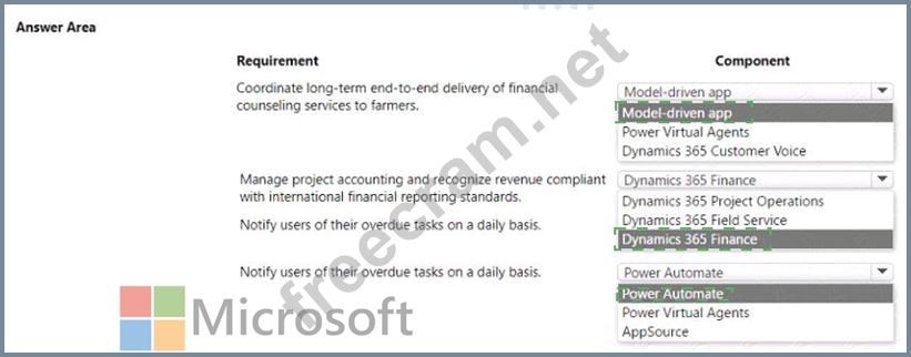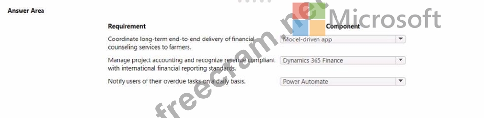 You need to select Microsoft Power Platform components to satisfy the requirements.
