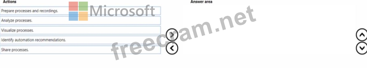 In which order should you perform the actions? To answer, move all actions from the list of actions to the answer area and arrange them in the correct order.