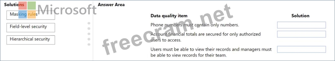 What should you recommend? To answer, drag the appropriate solutions to the correct data quality items. Each solution may be used once, more than once, or not at all. You may need to drag the split bar between panes or scroll to view content NOTE: Each correct selection is worth one point.
