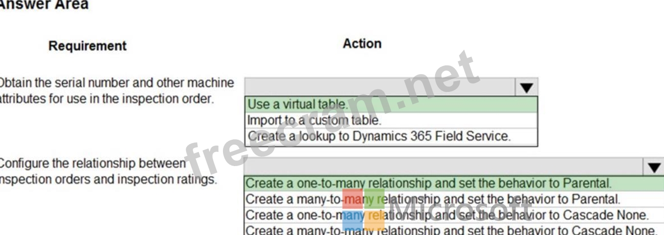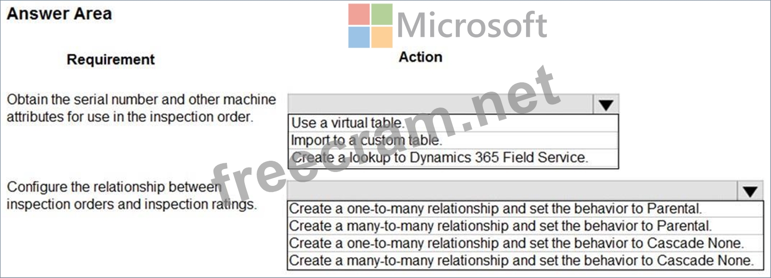Fabrikam is evaluating Microsoft Power Platform to determine whether it can meet the company's requirements for a manufacturing defect and quality inspection solution. Each machine produced must be subjected to a quality inspection at various points during production. Each machine must undergo a more extensive quality inspection before the machine can be shipped to the customer.