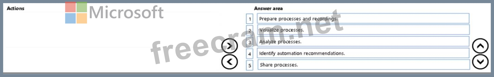 In which order should you perform the actions? To answer, move all actions from the list of actions to the answer area and arrange them in the correct order.