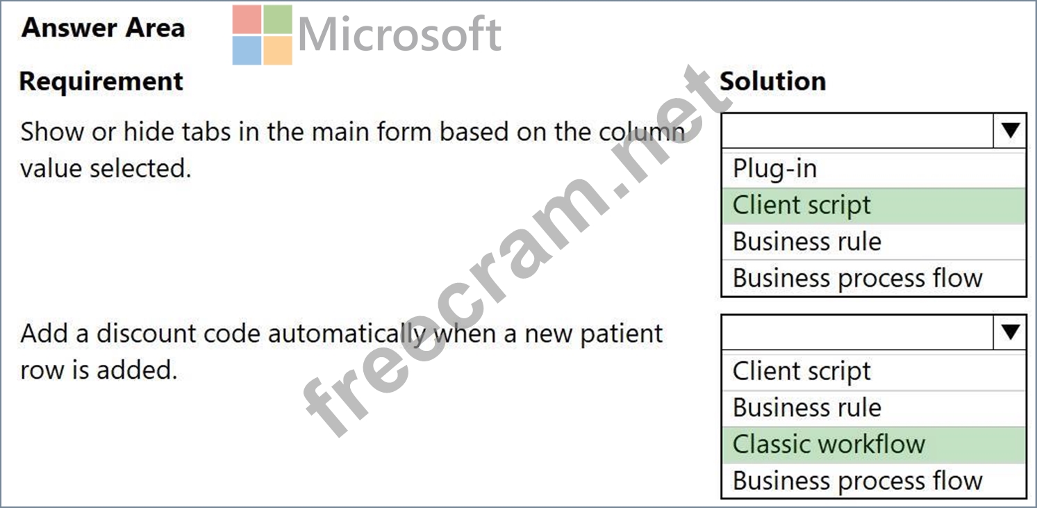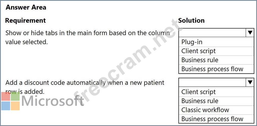 Patient information is managed using Dataverse forms. The company must enforce the following rules to manage data quality: