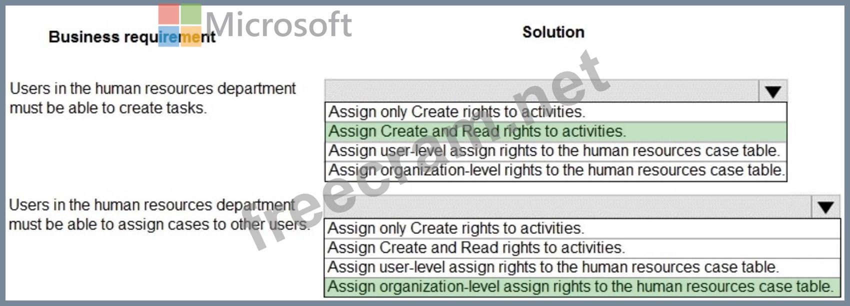 Box 2: Assign organization--level assign rights to the human resources case table.