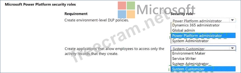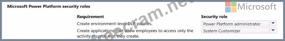 Which security roles should you use? To answer, select the appropriate options in the answer area.