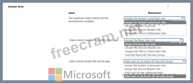 You are working with a customer to plan a go-live deployment to their production environment. The solution includes several apps and environment variables. The superuser team manages the production environment that is secured by using a specific environment Azure AD security group.