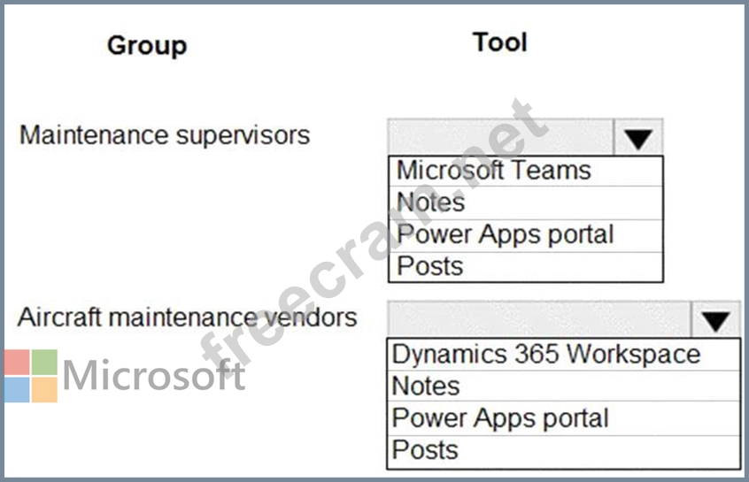 * Maintenance supervisors must not have access to Dynamics 365 Customer Service. The supervisors must be able to communicate with the contracts team about contracts.