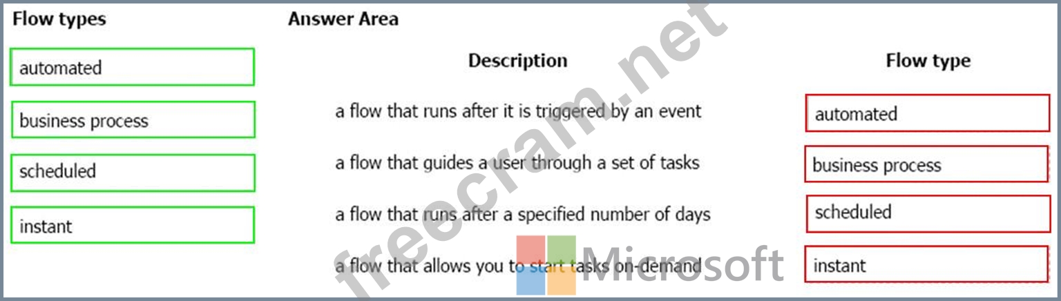 Scheduled flows run regular reports that are sent out to a team and summarize everything that's happened in the past week. This includes everything from simple daily scheduling to more complex scheduling like "every 3rd Monday." Box 4: instant An instant flow is triggered when you click a button inside of the Flow mobile app, SharePoint, Dynamics, PowerApps, or Excel that passes context directly into your flow.