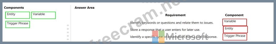 Which components should you use? To answer, drag the appropriate components to the correct requirements. Each component may be used once, more than once, or not at all. You may need to drag the split bar between panes or scroll to view content.