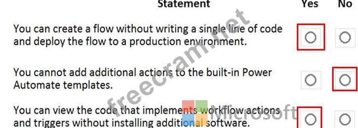 For each of the following statements, select Yes if the statement is true. Otherwise, select No.