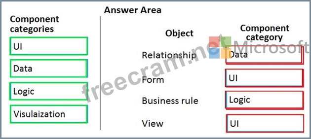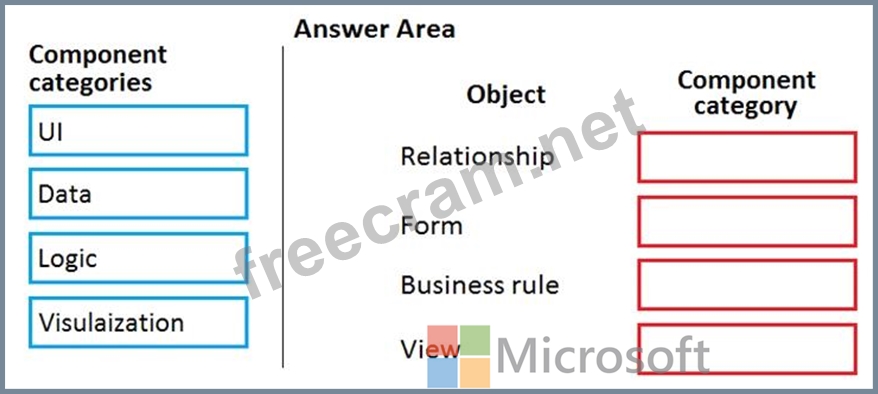 Which component categories should you use? To answer, drag the appropriate component categories to the correct objects. Each component category may be used once, more than once, or not at all. You may need to drag the split bar between panes or scroll to view content.