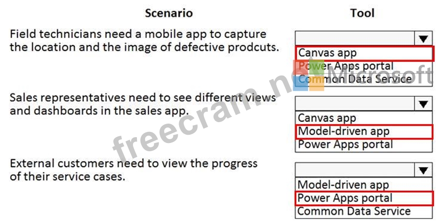 You need to recommend the appropriate types of Power Apps to use.