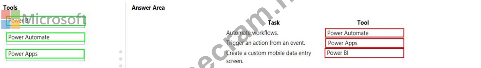 Question 2: You create a Power BI dashboard. Match each option to its fu...