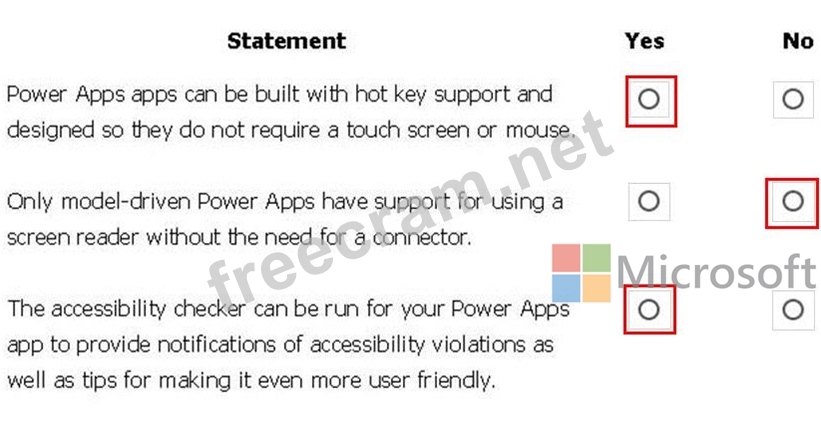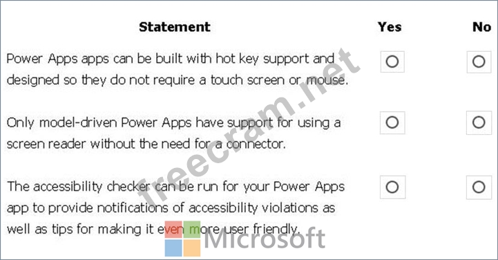The following software combinations are the supported recommendations for consuming PowerApps with a screen reader: