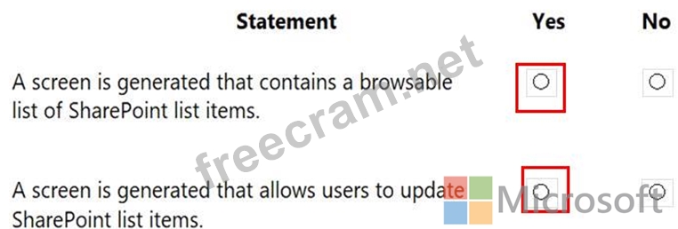 Question 33: You create a canvas app by using the Generate from data feat...