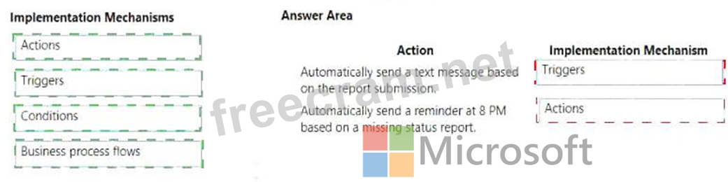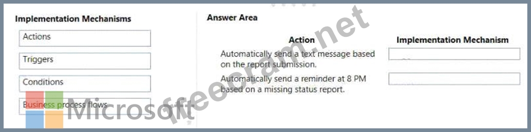 What should you use? To answer, drag the appropriate implementation mechanisms to the correct requirements. Each implementation mechanism may be used once, more than once, or not at all. You may need to drag the split bar between panes or scroll to view content NOTE: Each correct selection is worth one point