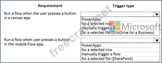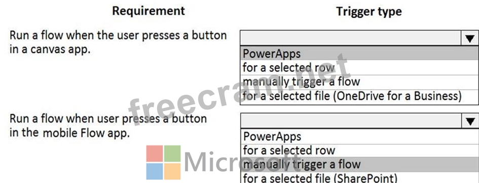 What trigger types should you recommend? To answer, select the appropriate options in the answer area.