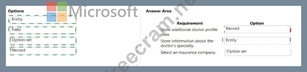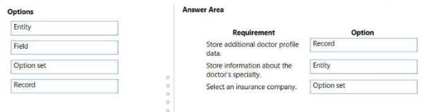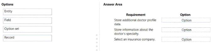 You plan to create a screen that allows users to capture information about doctors. The screen must provide users the ability to enter or select the following information;
