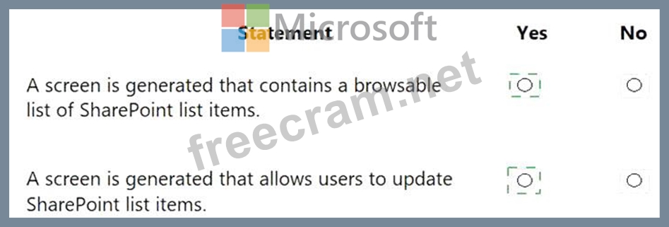 For each of the following statements, select Yes if the statement is true. Otherwise, select No.