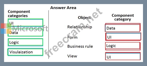 Which component categories should you use? To answer, drag the appropriate component categories to the correct objects. Each component category may be used once, more than once, or not at all. You may need to drag the split bar between panes or scroll to view content.