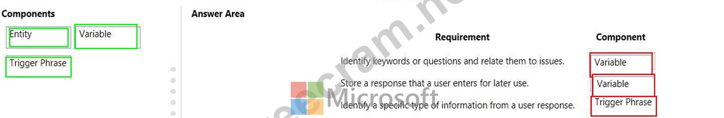 Which components should you use? To answer, drag the appropriate components to the correct requirements. Each component may be used once, more than once, or not at all. You may need to drag the split bar between panes or scroll to view content.