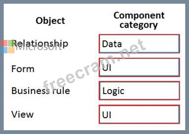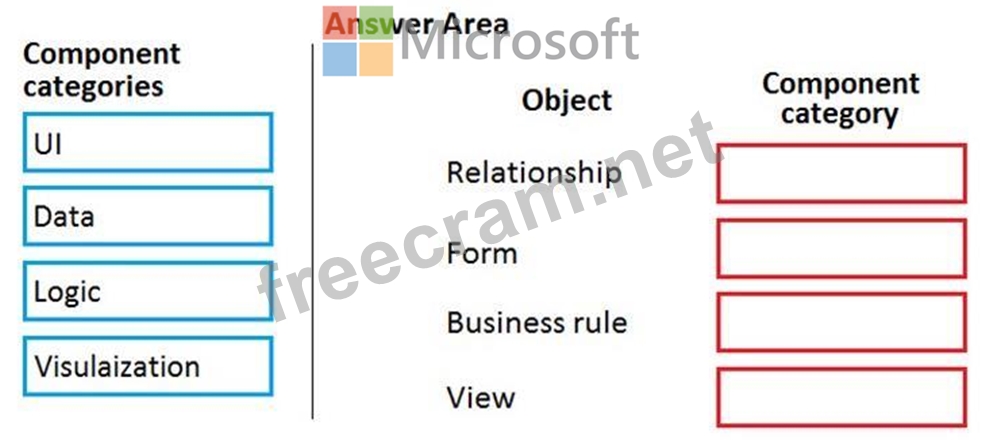 Which component categories should you use? To answer, drag the appropriate component categories to the correct objects. Each component category may be used once, more than once, or not at all. You may need to drag the split bar between panes or scroll to view content.