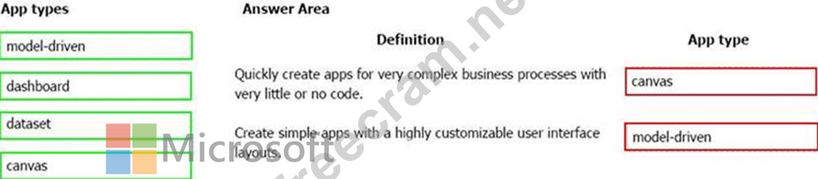 Instructions: To answer, drag the appropriate app type from the column on the left to its definition on the right. Each app type may be used once, more than once, or not at all.