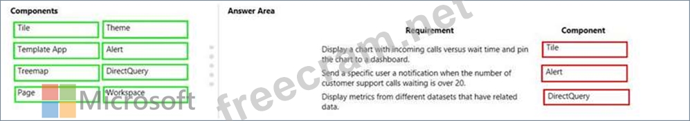 Question 57: You create a Power BI dashboard that displays data from Dyna...