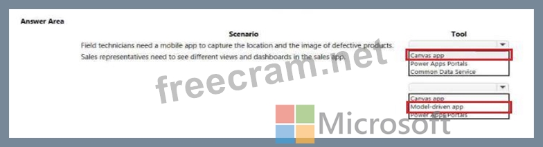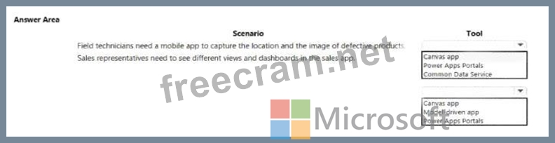 A company plans to use Power Platform to build apps that address specific business challenges. You need to recommend the appropriate types of Power Apps to use. What should you recommend? To answer, select the appropriate options in the answer area.