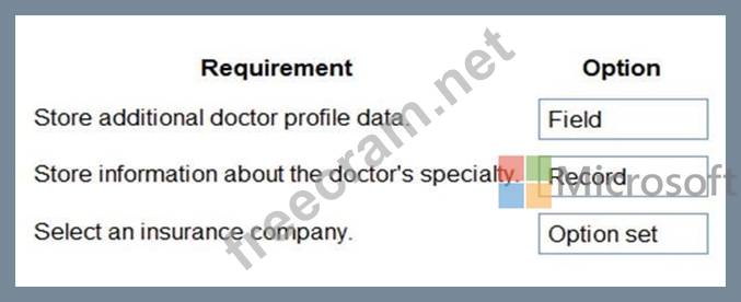 You plan to create a screen that allows users to capture information about doctors. The screen must provide users the ability to enter or select the following information;