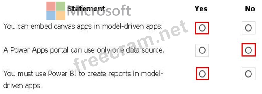 Question 63: You are creating a model-driven app. For each of the followi...