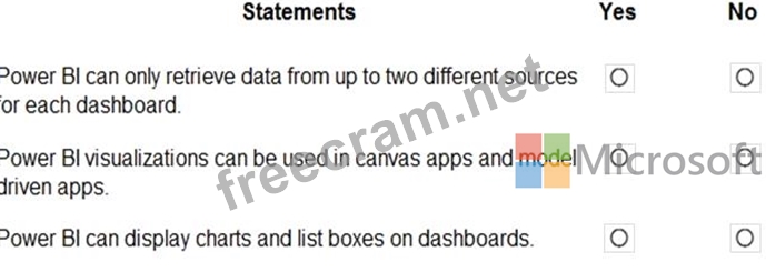 Question 63: You are creating a model-driven app. For each of the followi...