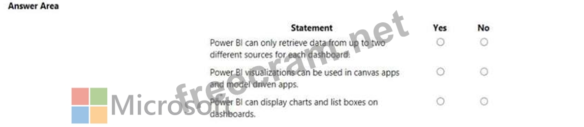 Question 63: You are creating a model-driven app. For each of the followi...