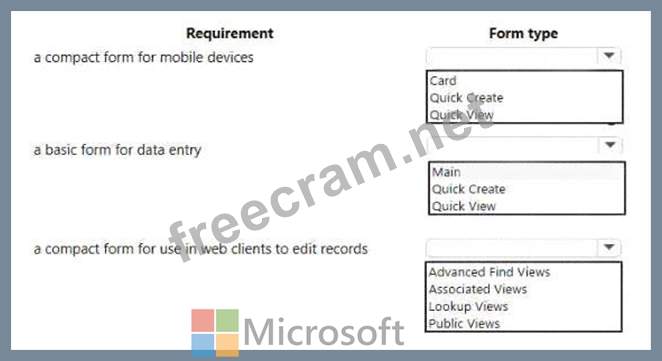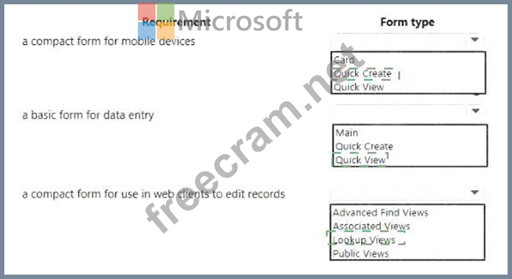 Which form types should you use> To answer, select the appropriate options in the answer area.