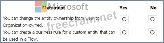 Question 25: You create a user-owned custom entity by using Common Data S...