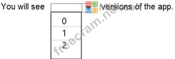 How many versions of the app are displayed in the Version tab for the app? To answer, select the appropriate option in the answer area.